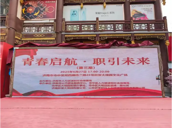 为深入贯彻国家及山东省关于开展 “百日千万招聘专项行动” 的部署要求,切实服务高校毕业生、城镇失业人员、农民工、脱贫劳动力等重点群体就业,6 月 27 日傍晚,在济南市人力资源和社会保障局组织下,山东职来职往人力资源管理服务有限公司携手济南市公共就业服务中心、市中区人力资源和社会保障局、大观园街道纬一路社区、济南欧亚大观园有限公司,在大观园商场成功举办 “招聘进商超 - 夜聘嘉年华” 暨 “青春启航 职引未来”(第三期)社区微业活动。46 家企业集结,释放 3700 个就业岗位,为求职市场注入活力。